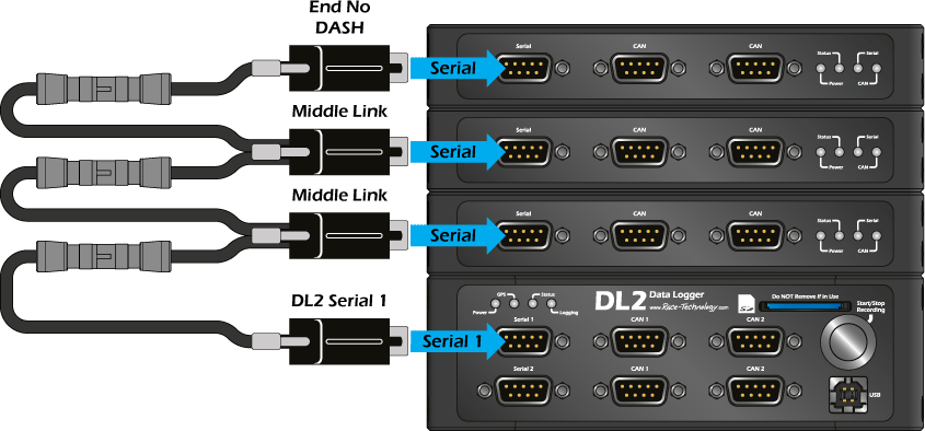 Three units connected to DL2 with the modular cable system. Add more units with more "Middle Link" cables