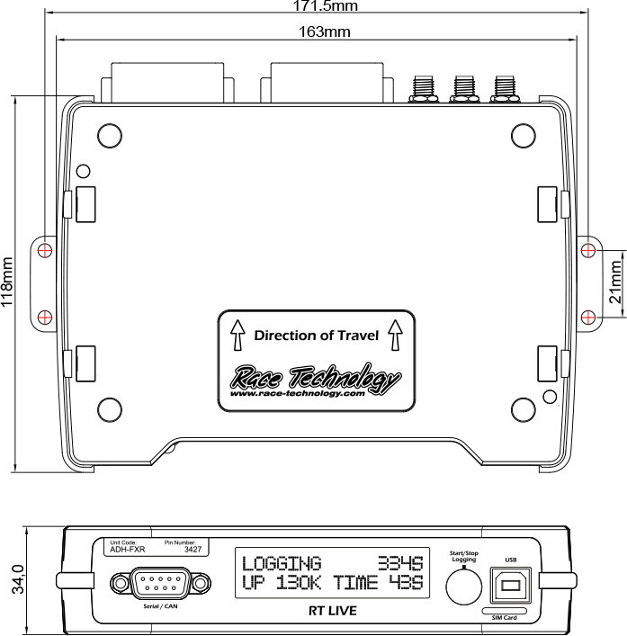 - 4G LTE antenna is adhesive and mounted on the windscreen.