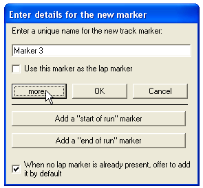 When you are adding the special “Start of Run” or “End of Run” markers it is either possible to type the name in directly, or you can click on the more button and then use the additional buttons that appear. The only difference is that by using these additional buttons, it avoids any possiblility of typing errors in the names of the markers and it’s faster, functionally it makes no difference when compared to simply typing the name in.