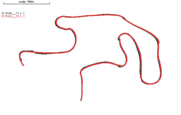 5. Once this is done then the start points of both data sets are lined up perfectly, overlaying the first sector from each of the runs they can be compared