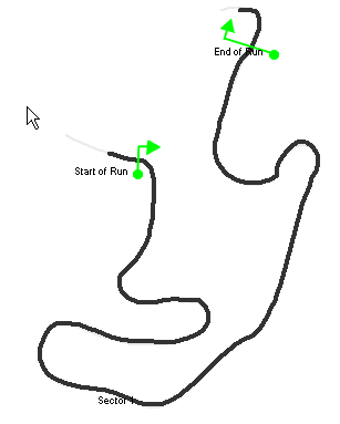 However this must not be used in the “open circuit” case, instead the start and end points need to be defined. This is done with the special track markers called “Start of run” and “End of run”, adding these you get something like: