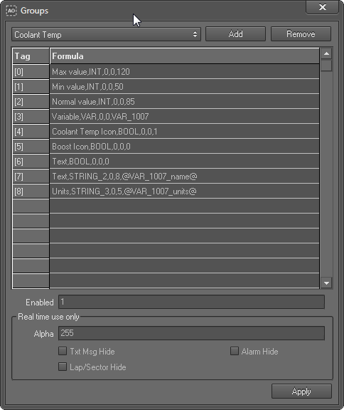 | Sets a custom background colour for dashboard overlays (WVGA 800 x 480)