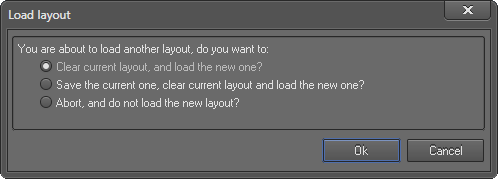 If the design area is not empty, then it displays the Load layout dialog with three options.