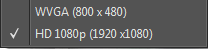 HD 1080p (1920 X 1080) and WVGA (800 X 480) (Menu commands)