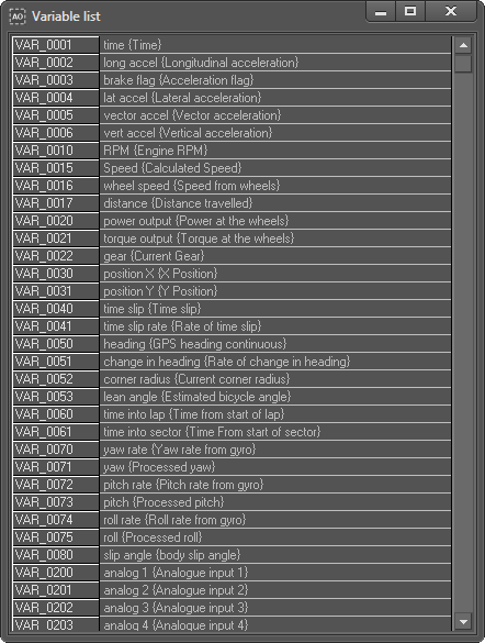 Variable list (Menu command)