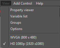 Opens a panel that shows the list of properties associated with the currently selected control.